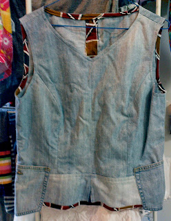 There was a small window of opportunity to sew before I began coughing so ferociously I nearly asked the boy to go out and buy me a pack of Tena Ladys. And in that time I finished the shell top that I made from the boy's old pair of faded summer jeans.
